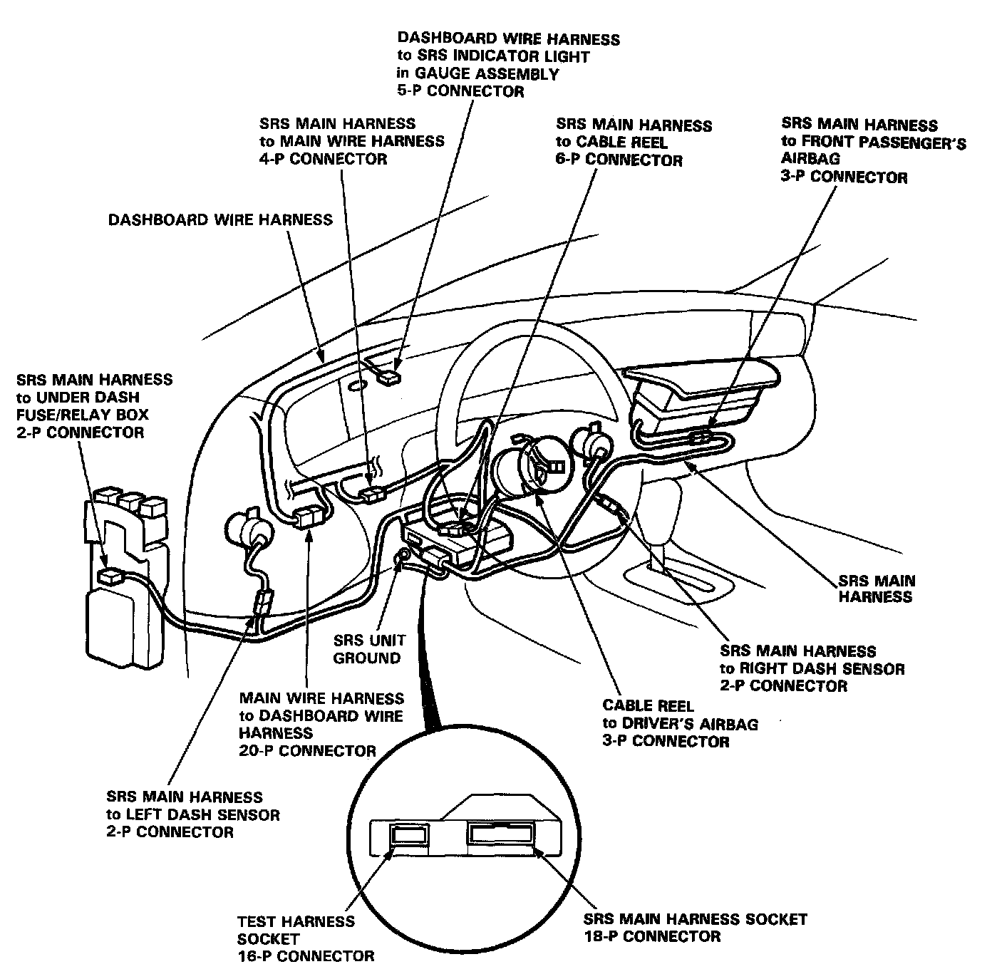 - Replace the entire affected SRS harness assembly if it has an open circuit or damaged wiring.