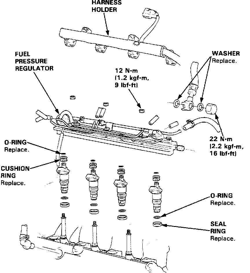 Fuel Injector and Fuel Rail Exploded View: