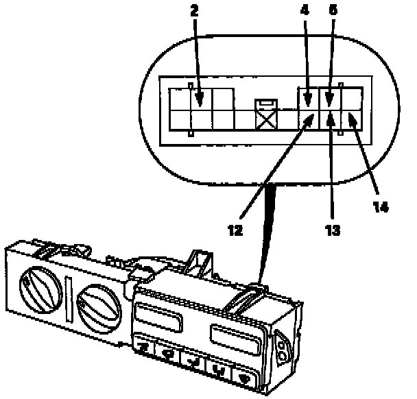 Refer to illustration for terminal identification. Check for continuity between the terminals according to the table.