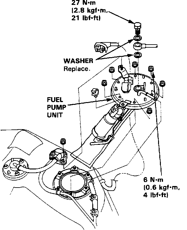 WARNING: Do not smoke while working on the fuel system. Keep open flames or sparks away from your work area. Be sure to relieve fuel pressure with the ignition switch OFF. It is recommended that the battery be disconnected before any fuel system work is to be done.NOTE: The radio may have a coded theft protection circuit. Be sure to get the customer's code number before disconnecting the battery. After service, reconnect power to the radio and turn it on. When the word "CODE" is displayed, enter the customer's 5-digit code to restore radio operation.