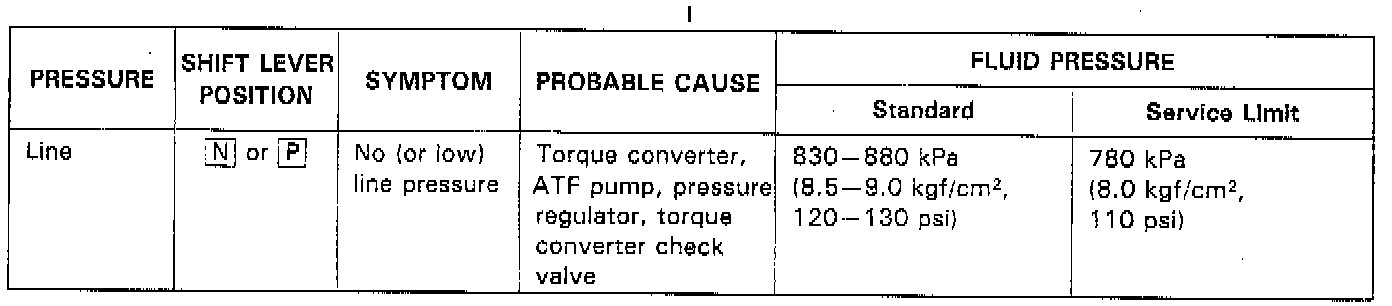 NOTE: Higher pressures may be indicated if measurements are made in shift lever positions other than N or P position.
