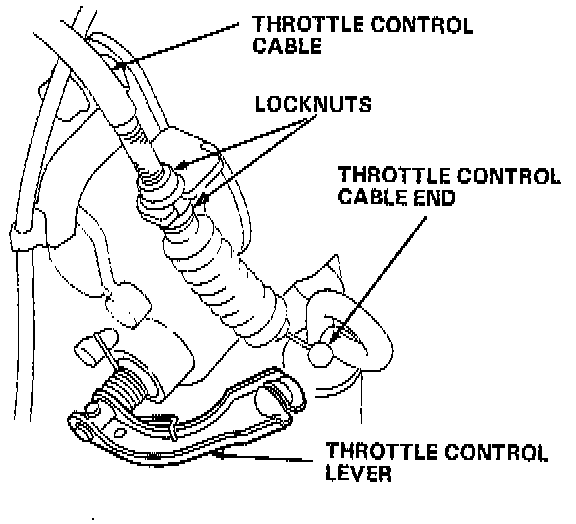 NOTE: Do not loosen the locknuts; simply unhook the throttle control cable end.