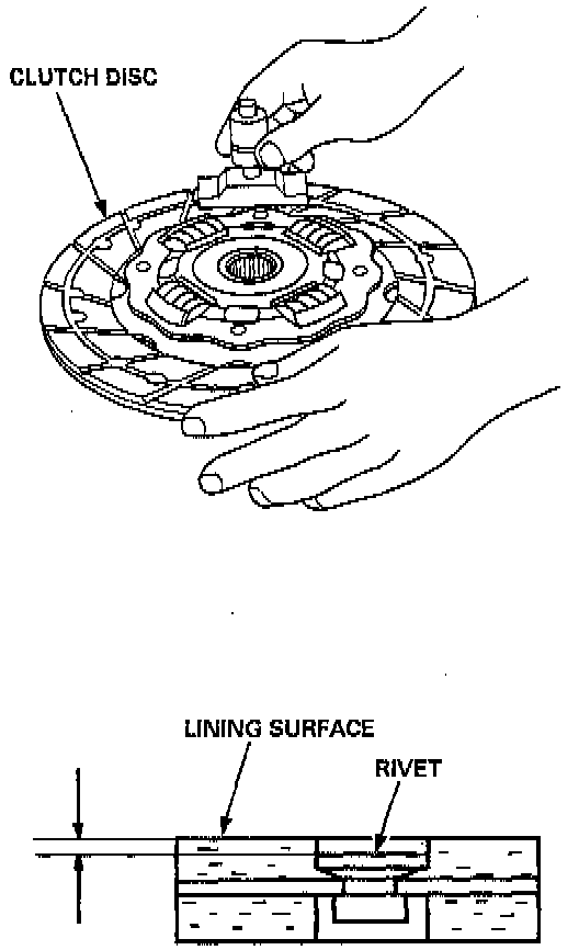 NOTE: If the rivet depth is less than the service limit, replace the clutch disc.