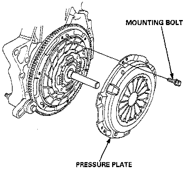 3. Install the pressure plate and the mounting bolts finger-tight.