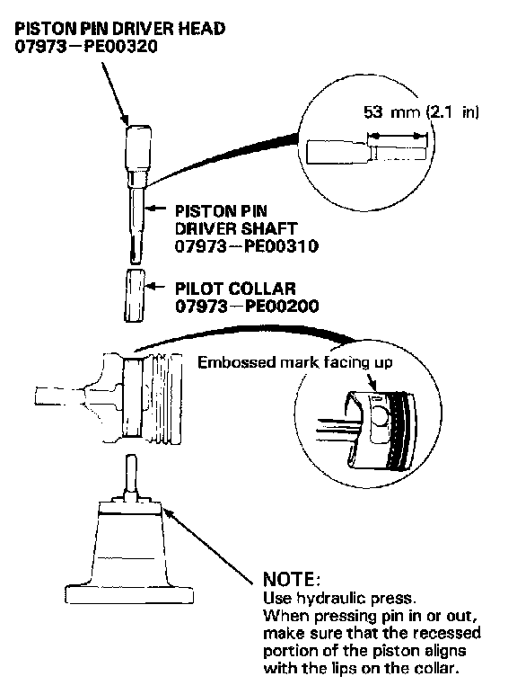 2. Adjust the length of piston pin driver to 53 mm (2.1 in) as shown.