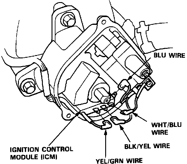 2. Disconnect the BLK/YEL, WHT/BLU, YEL/GRN, and BLU wires from the ICM.