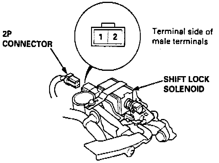 3. Disconnect 2-P electrical connector from shift lock solenoid.