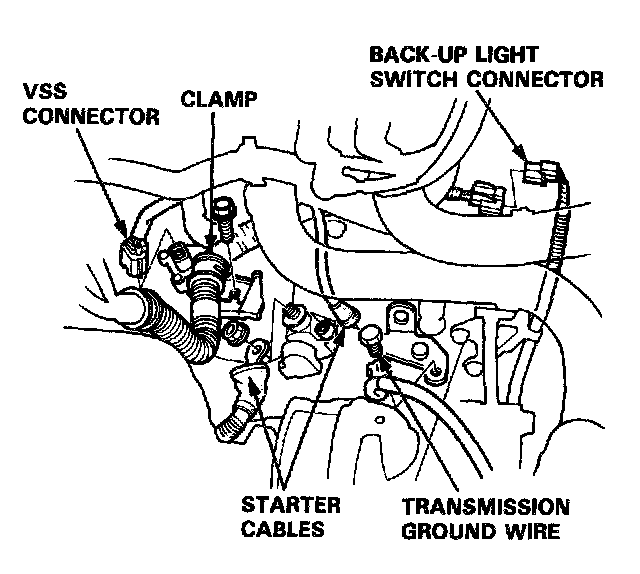 6. Disconnect the back-up light switch connector and vehicle speed sensor (VSS) connector.
