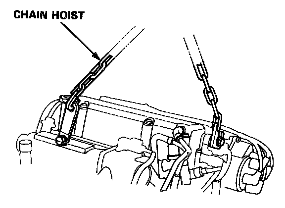 12. Install the bolts in the cylinder head and attach a chain hoist to the bolts, then lift the engine slightly to unload the mounts.