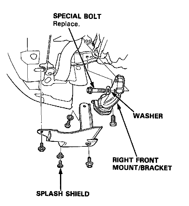 13. Remove the splash shield and right front mount/bracket.