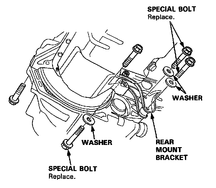 17. Remove the rear mount bracket bolts and transmission mounting bolts