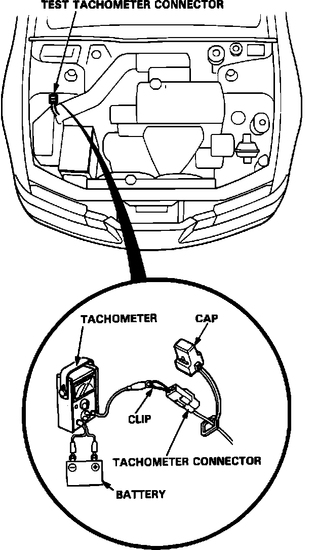 The Test Tachometer Connector is Located in front of the right strut tower.