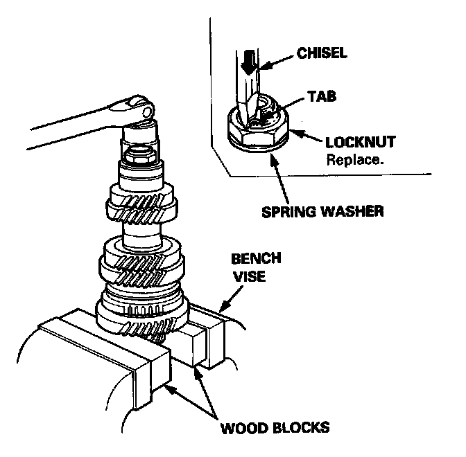 1. Securely clamp the countershaft assembly in a bench vise with wood blocks.