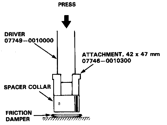 3. Install the friction damper on the spacer collar using the special tools and a press as shown.