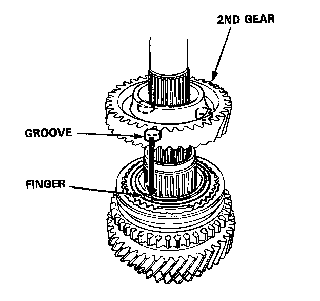 4. Install the 2nd gear by aligning the synchro cone fingers with 2nd gear grooves.