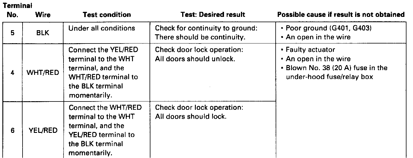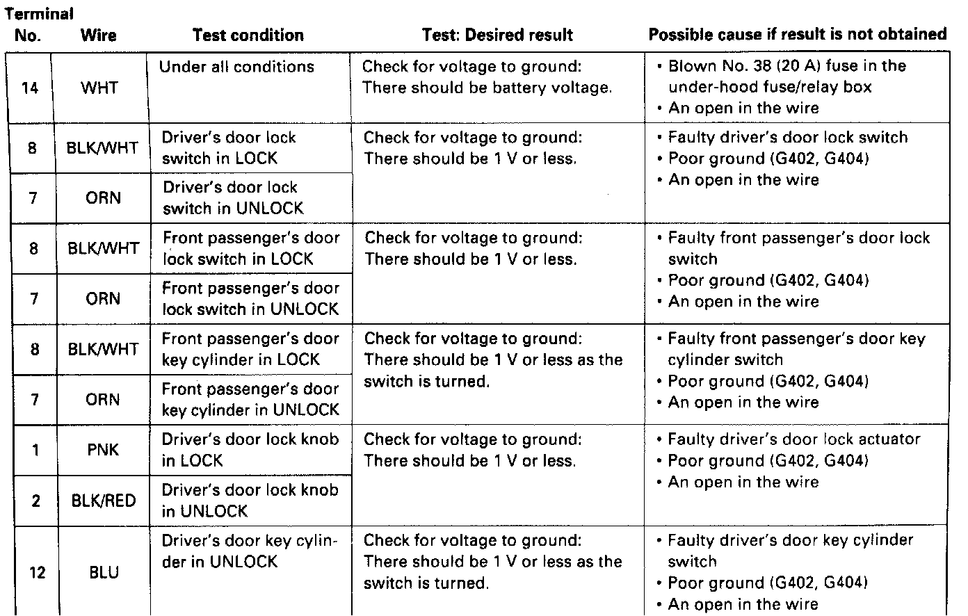 Control Unit Input Test (Coupe/Sedan/wagon: Without Keyless Entry)1. Remove the driver's door panel (see section 20}.