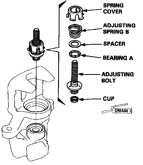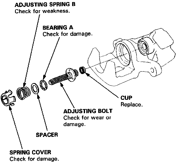 15. Remove the spring cover, adjusting spring B, spacer, bearing A and cup from the adjusting bolt.