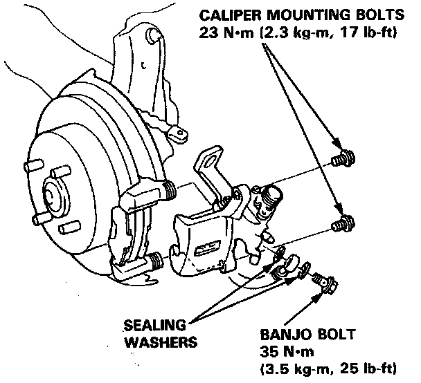 20. Connect the brake hose to the caliper with new sealing washers and tighten the banjo bolt.