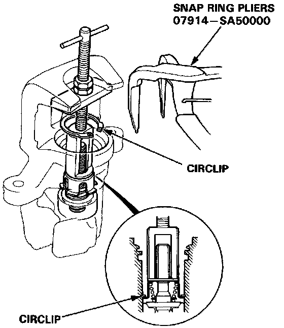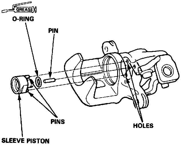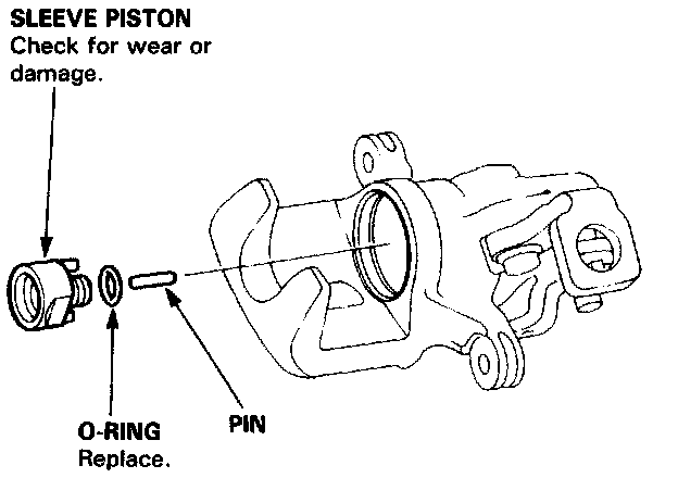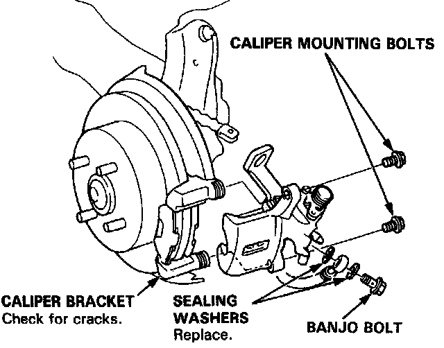 CAUTION: Be careful not to damage the inside of the caliper cylinder during caliper disassembly.