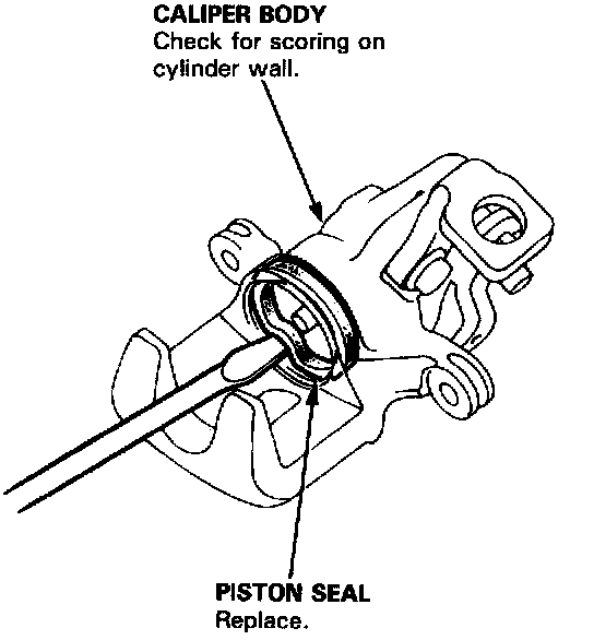 - Coat piston, piston seal, and caliper bore with clean brake fluid.