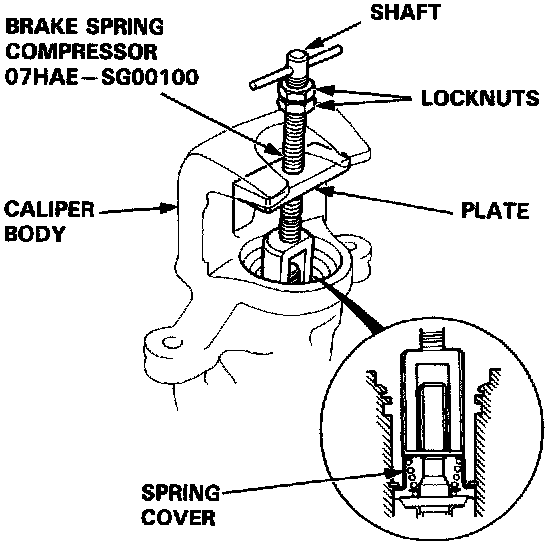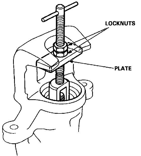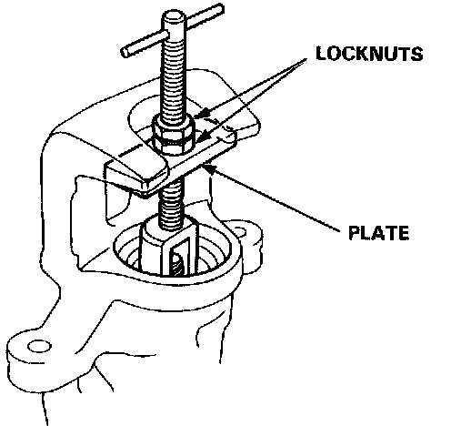 10. Install the special tool on the spring cover and turn the shaft until the locknut contacts the plate