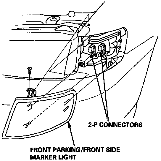 4. Disconnect the 2-P connectors from the front parking/front side marker light.