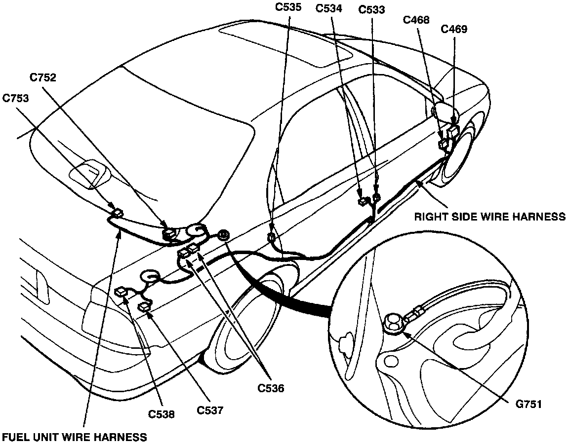 Right Side Wire Harness And Fuel Unit Wire Harness: