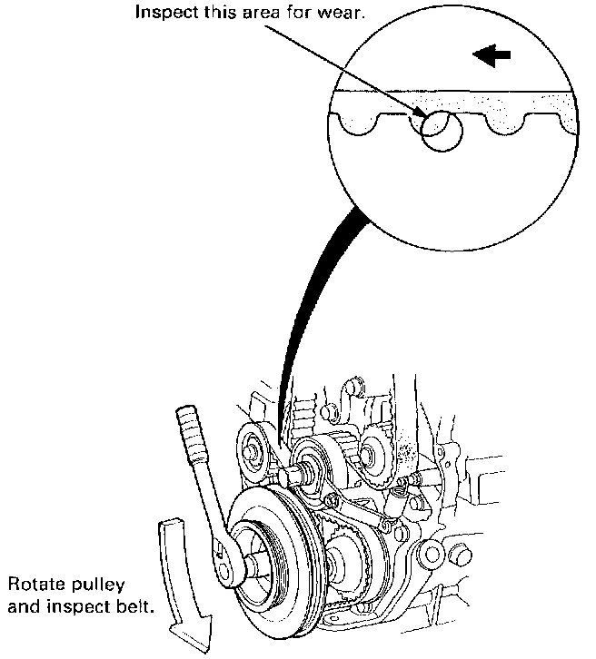 8. Inspect the timing balancer belt for cracks and oil or coolant soaking.