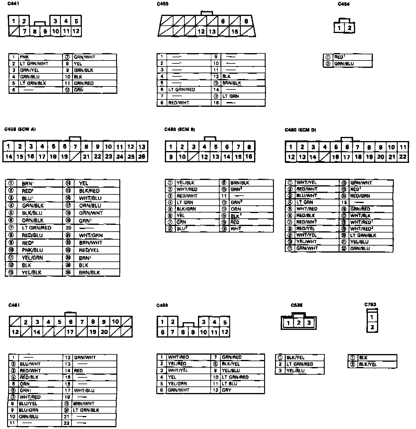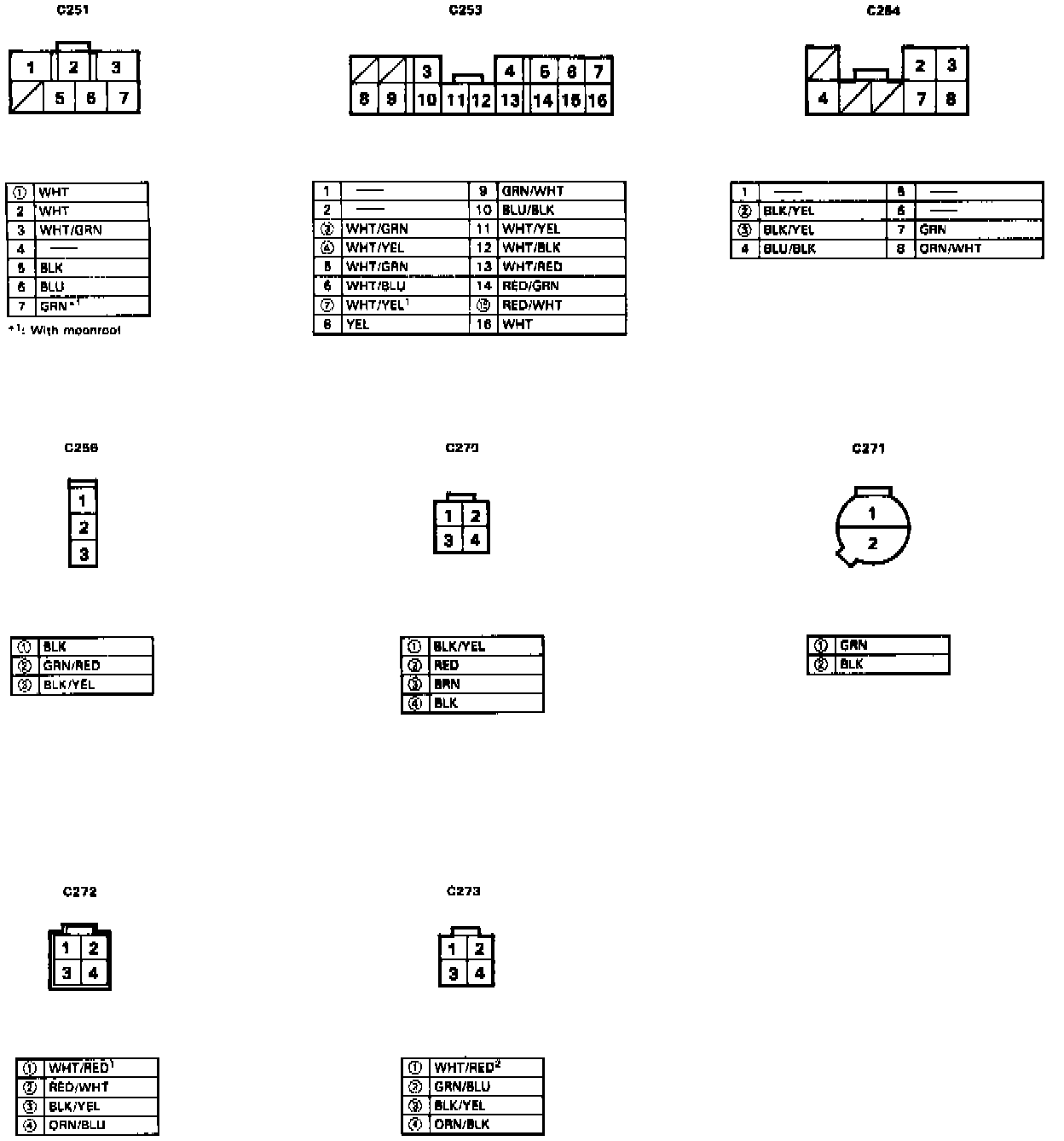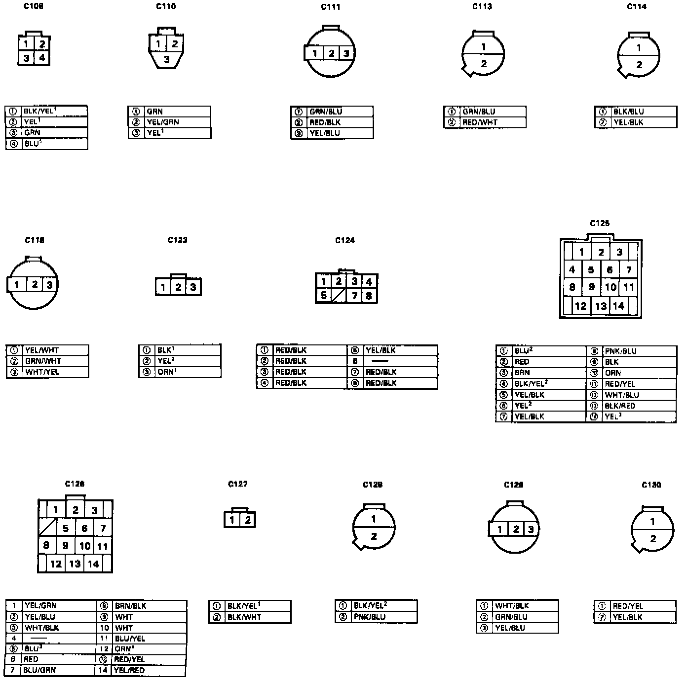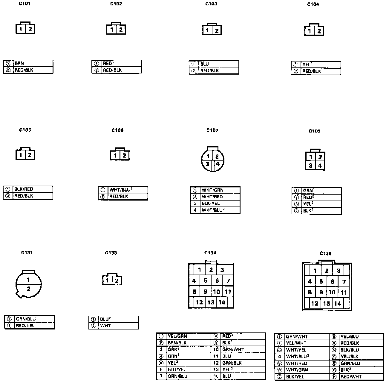 ^ - Different wires with the same color have been given a number suffix to distinguish them (for example, YEL/BLK1 and YEL/BLK2 are not the same).