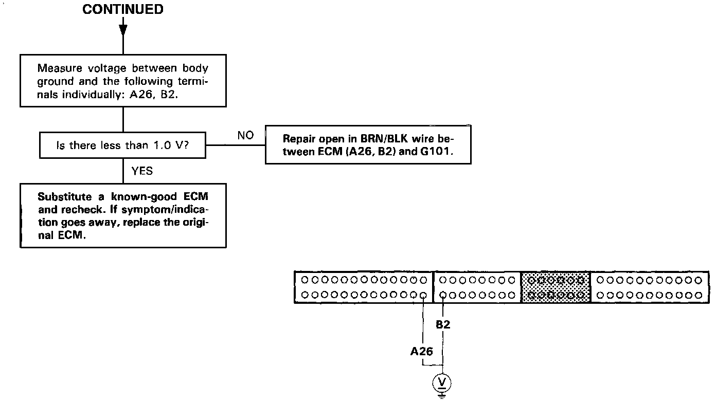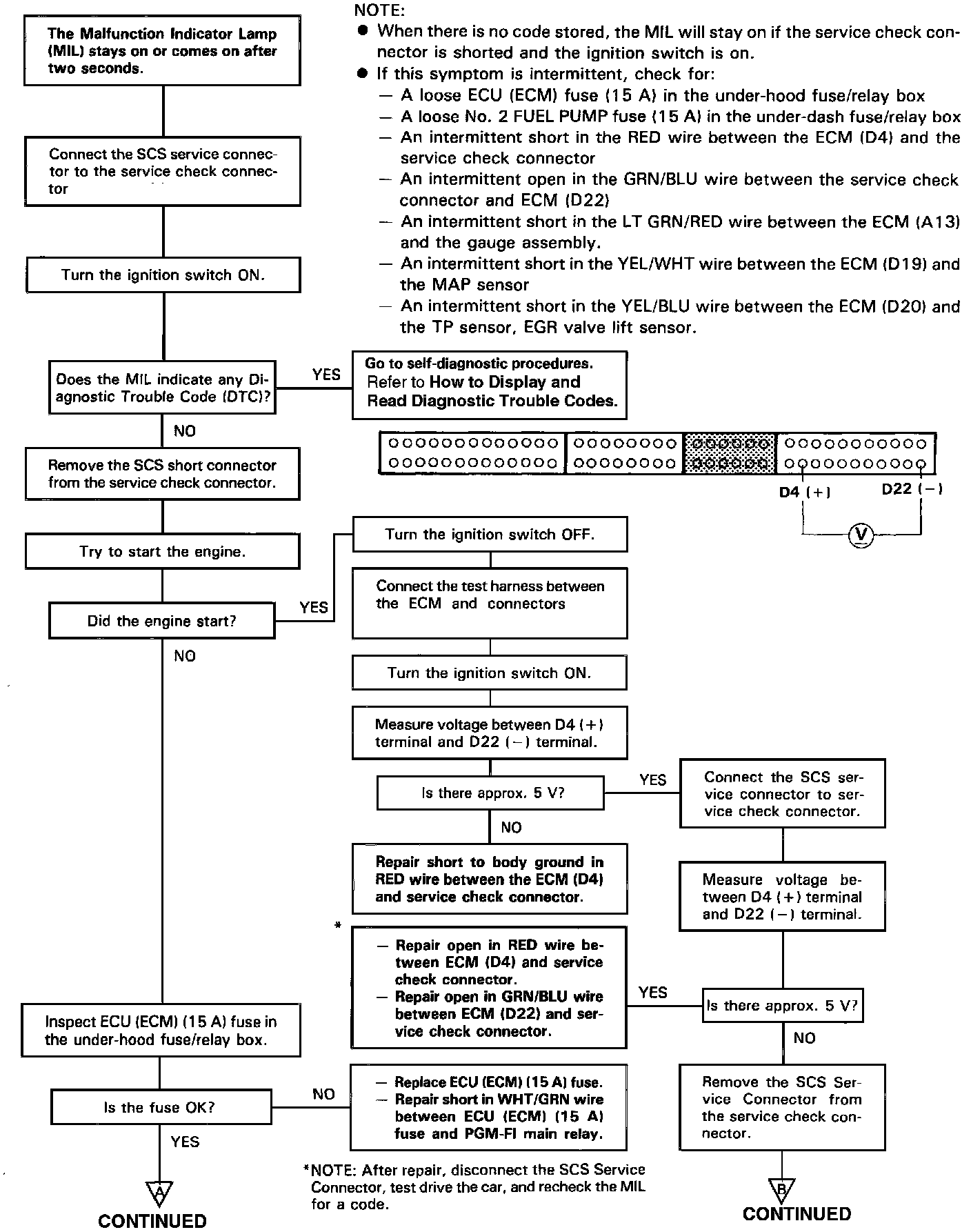 ^ An intermittent open in the GRN/BLU wire between the Service Check Connector and ECM (D 22).