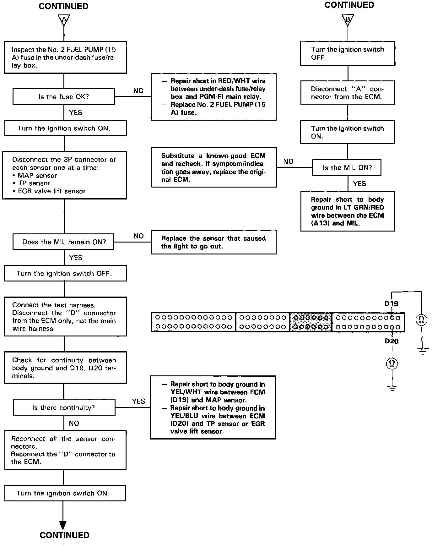 ^ An intermittent short in the YEL/WHT wire between the ECM (D 19) and the Manifold Absolute Pressure (MAP) Sensor.