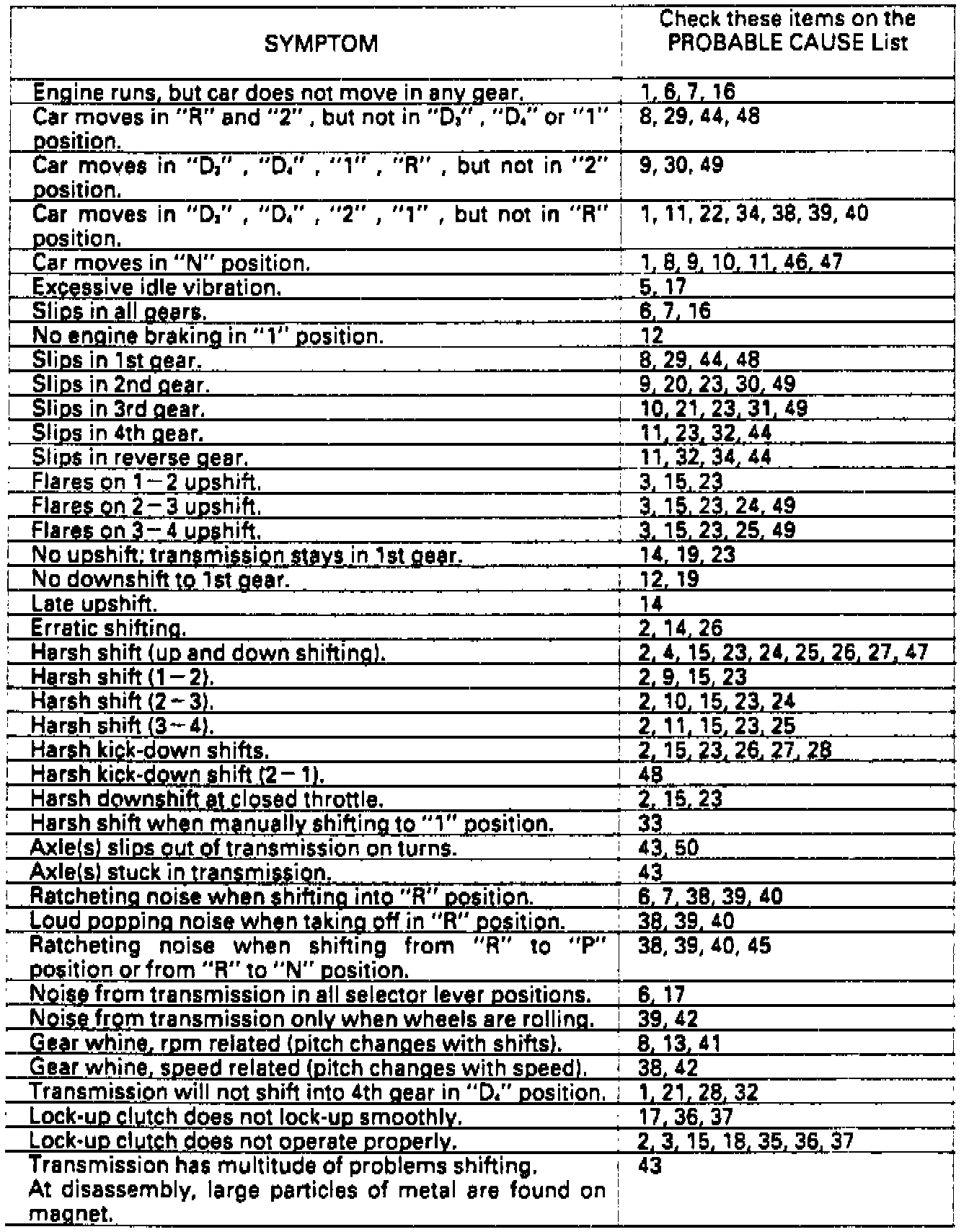 Symptom Troubleshooting Index