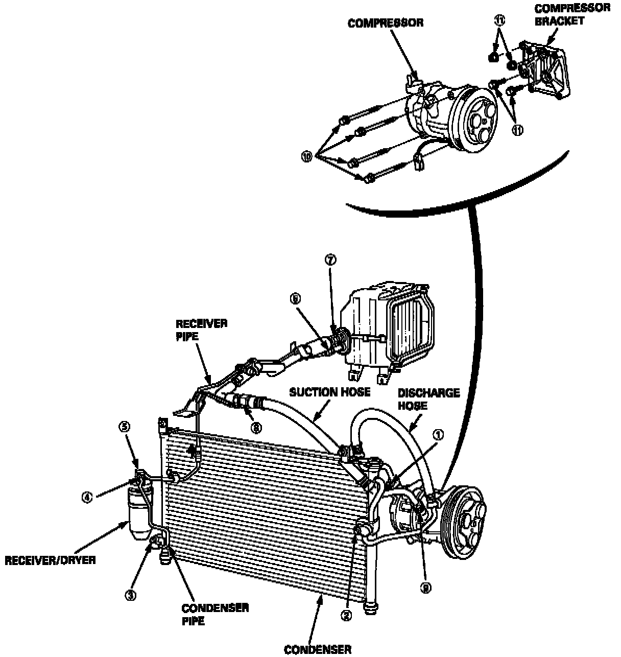 (6) Receiver Pipe To Evaporator: 13 Nm (9.4 lb ft)
