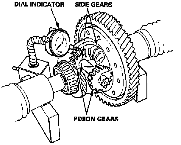 BACKLASH INSPECTION1. Place the differential assembly on V-blocks and install both axles.