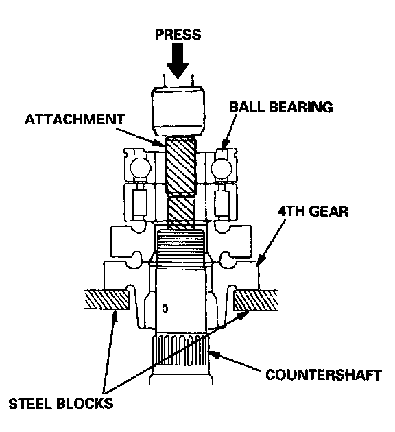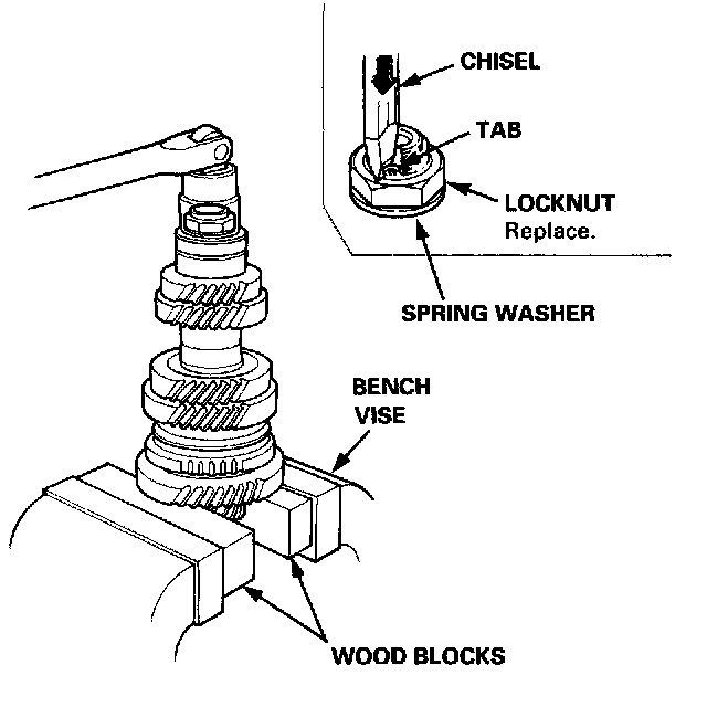 1. Securely clamp the countershaft assembly in a bench vise with wood blocks.
