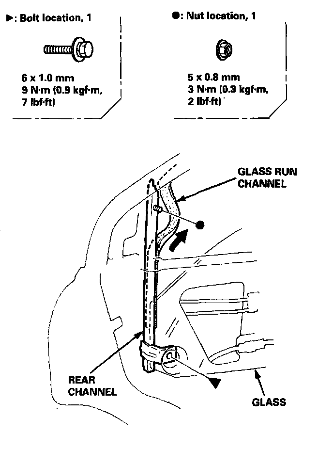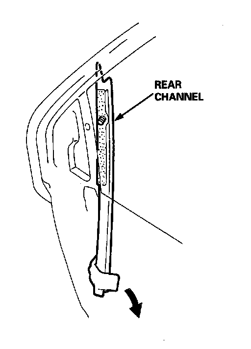 5. Remove the bolt and nut. Peel the glass run channel out of the rear channel.