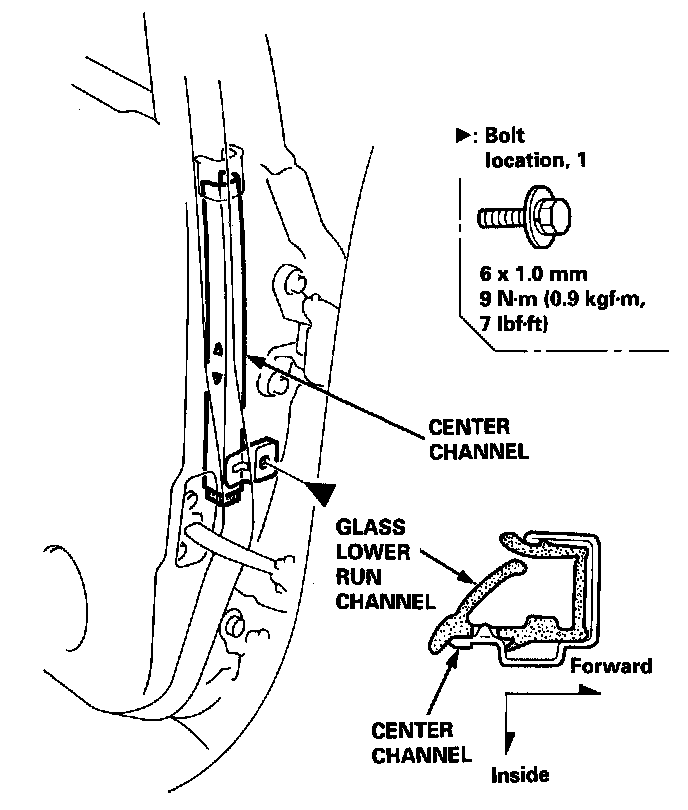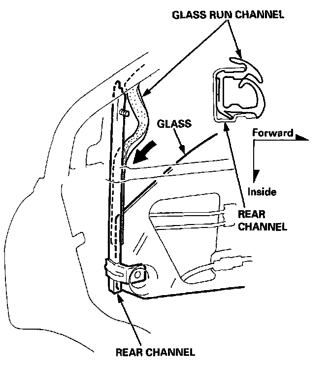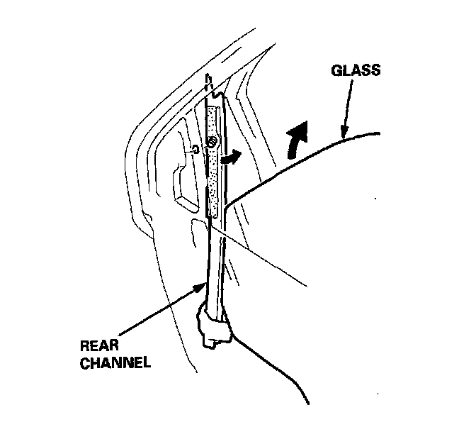 NOTE: Fit the glass run channel on the door as shown.