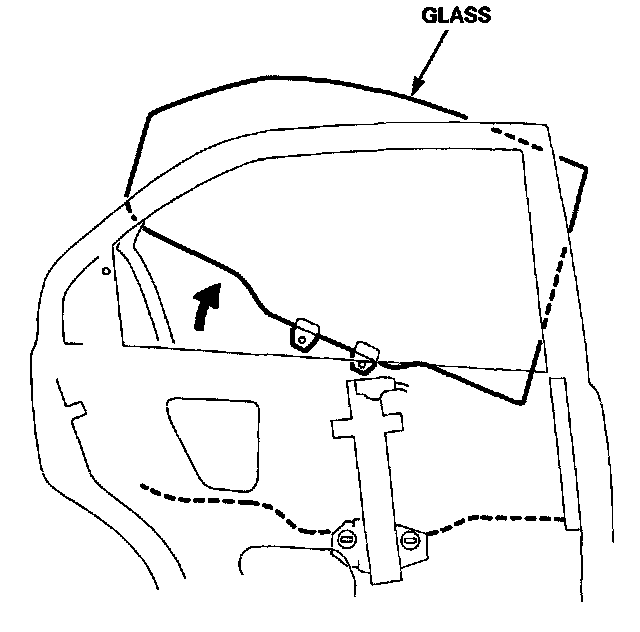 16. Roll the glass up and down to see if it moves freely without binding. Also make sure that there is no clearance between the glass and glass run channel when the glass is closed. Adjust the position of the glass as necessary.