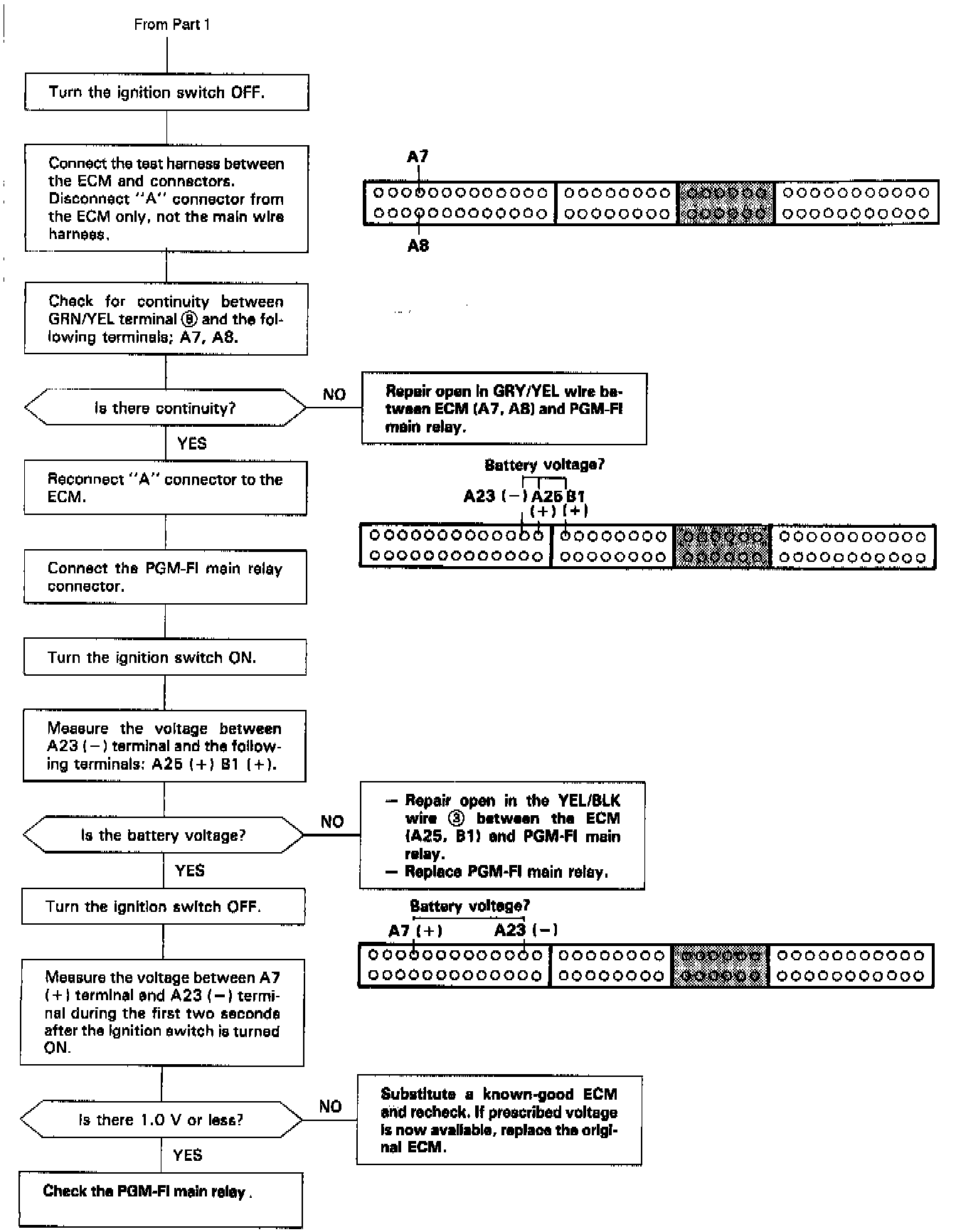 NOTE: If the car starts and continues to run, the PGM-FI main relay is OK.