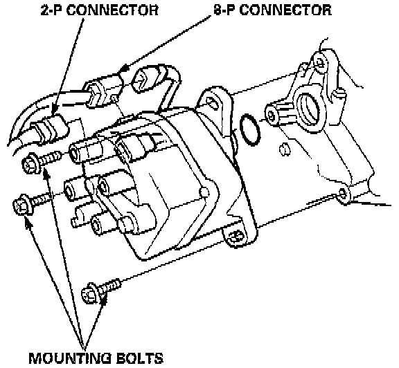 Disconnect the 2-P and 8-P connectors from the distributor.