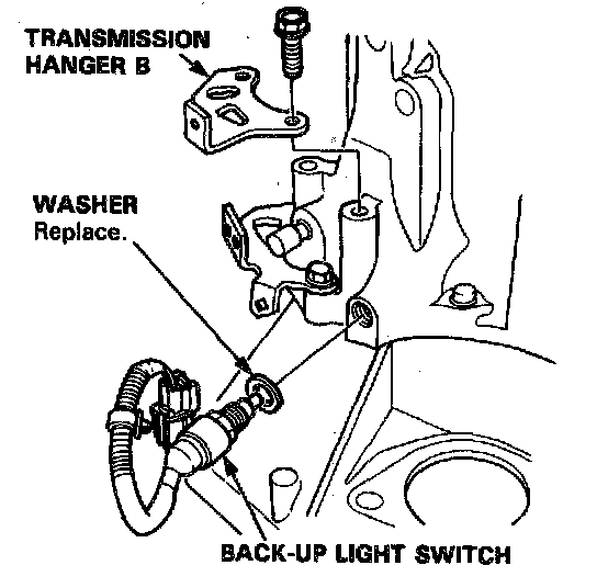NOTE: Place the clutch housing on two pieces of wood thick enough to keep the mainshaft from the hitting the workbench.1. Remove the back-up light switch.