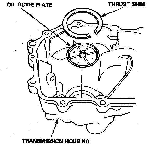 7. Remove the thrust shim and oil guide plate from the transmission housing.