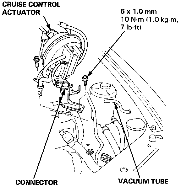 2. Disconnect the connector, then remove the cruise control actuator.
