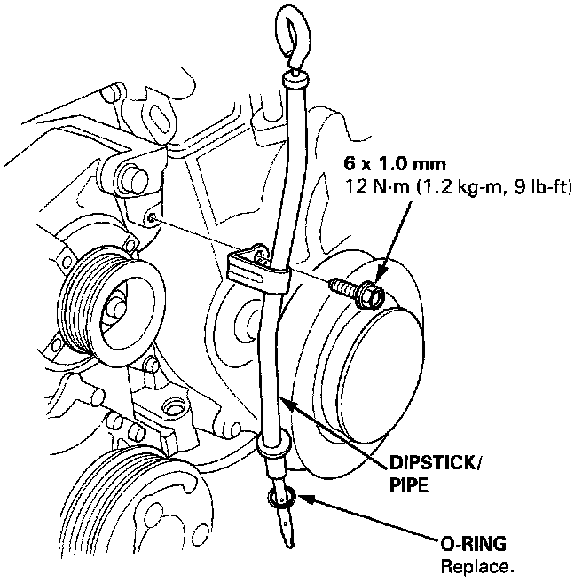 9. Remove the dipstick and the pipe