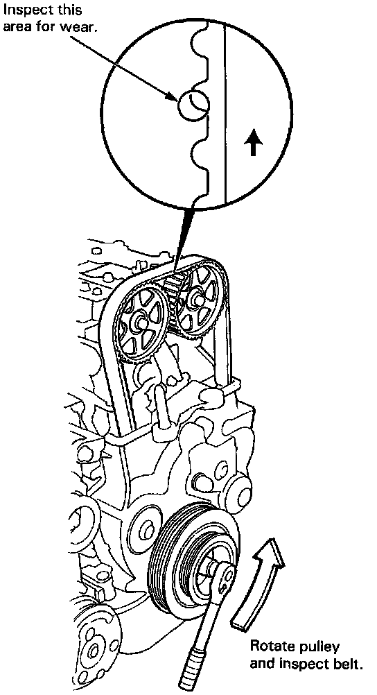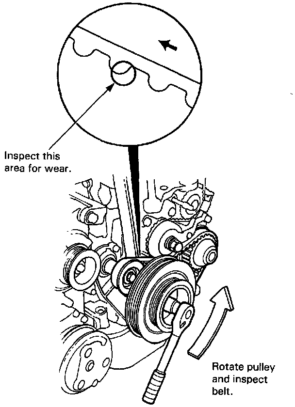 7. Inspect the timing belt for cracks and oil or coolant soaking.