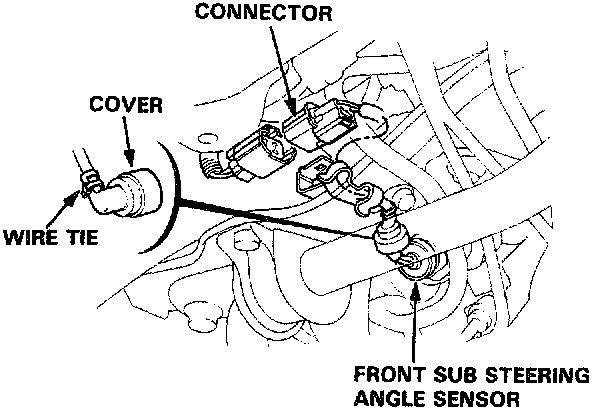 14. Disconnect the front sub steering angle sensor connector to straighten the wire.