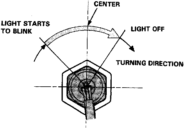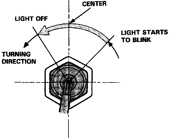 11. Turn the front sub steering angle sensor slowly clockwise, and check the range from where the light starts to blink to where it stops.