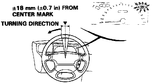 NOTE: Be sure that the center of the range where the 4WS indicator light blinks (indicating that the front sub steering angle sensor is electronically in neutral), is in the range ±18 mm (±O.7 in; ±5.5°) from the center mark on the steering wheel.