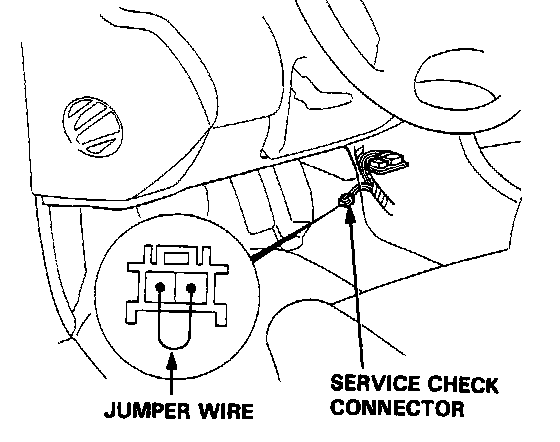 2. Take out the service check connector (BLU 2P) from behind the center console. Connect the terminals with a piece of jumper wire.
