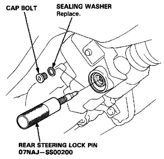 18. Turn the ignition switch off. Remove the special tool from the rear actuator, and install the cap bolt and the new sealing washer on the rear actuator.
